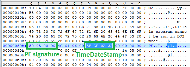 After patching the vulnerable code and effectively manually building a new version of Equation Editor, the patcher also corrected the version number of EQNEDT32.EXE to 2017.8.14.0, and the TimeDateStamp in the PE header to August 14, 2017 (hex value 5991FA38) - which is just 10 days after Microsoft acknowledged receipt of Embedi's report. (Note however that due to the manual nature of setting these values it's possible that code has been modified after that date.)
