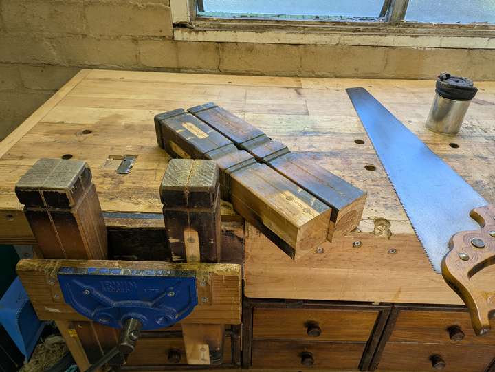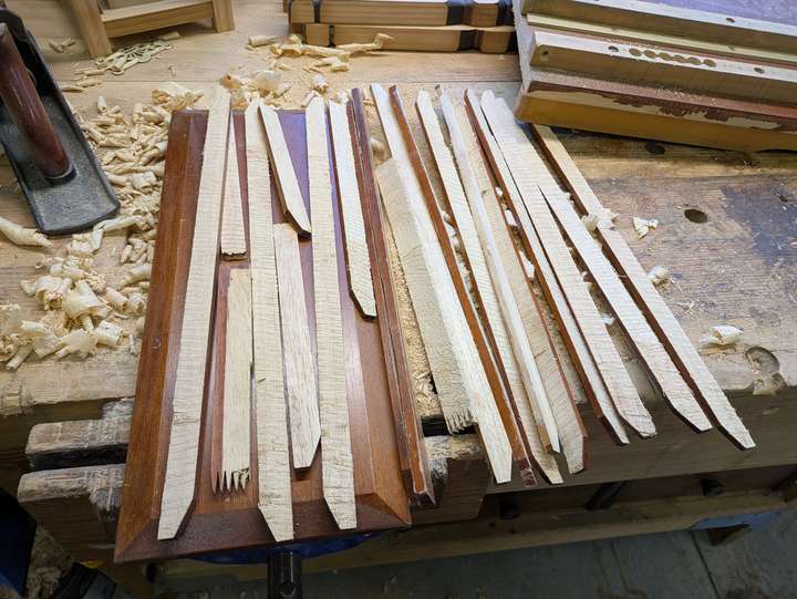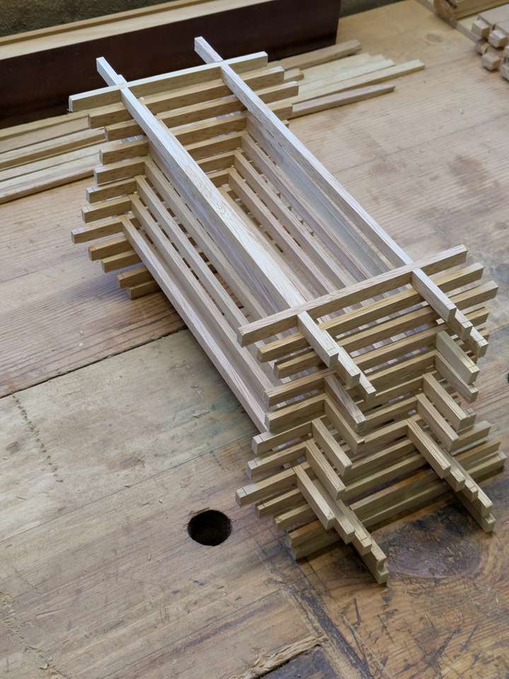 The grid pieces were cut from draw fronts, I think they are silky oak.