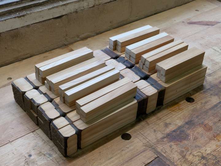 A measuring mistake meant that all these grids didn't end up with the right proportions, so a couple of extra horizontal members were added in.
