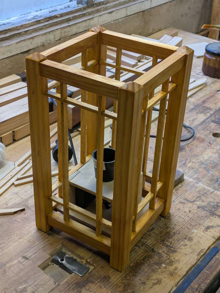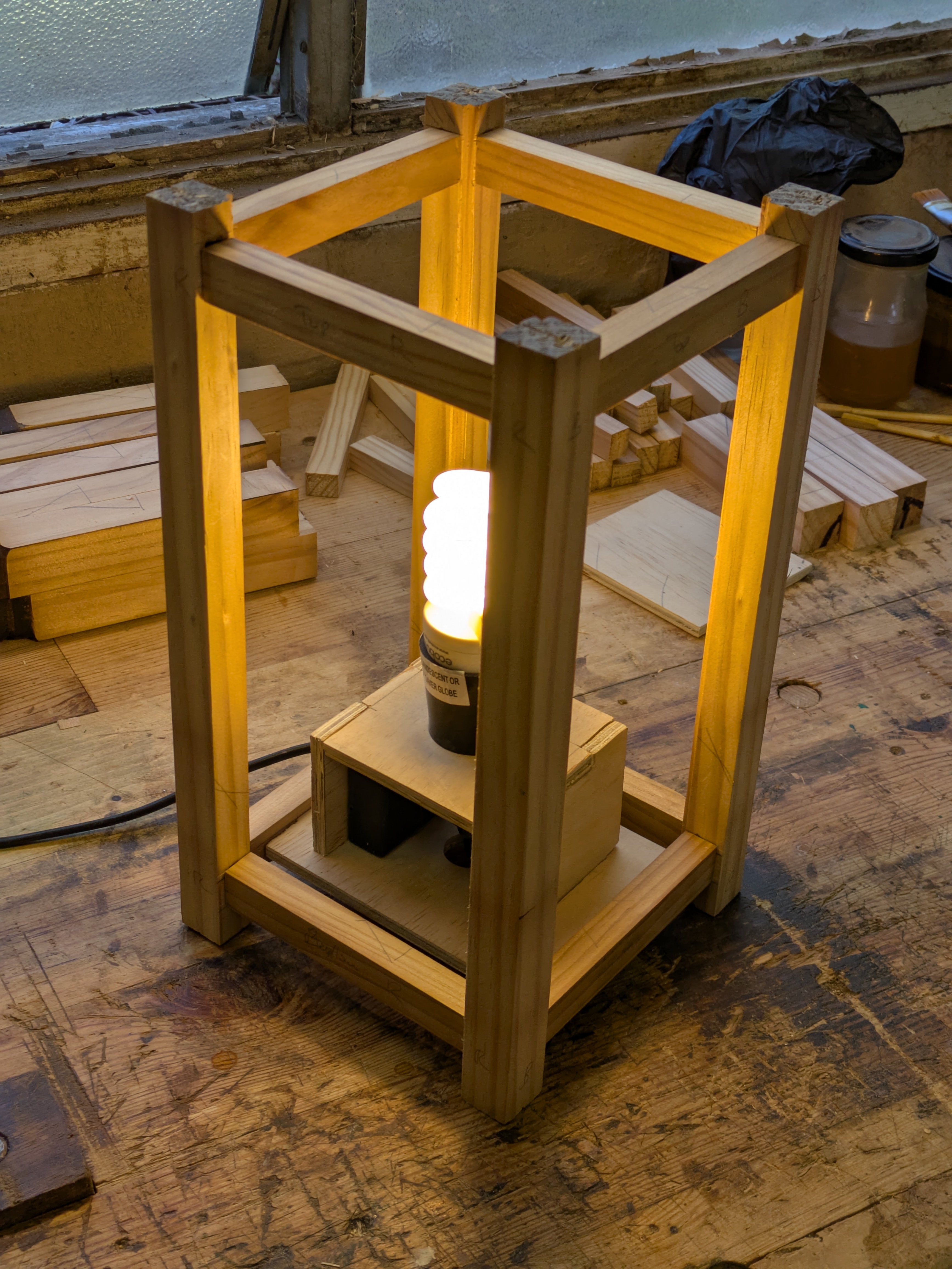 The main lesson from the prototype was that the lamp assembly needs to be easy to remove, this was pretty easy using a screw and washer to hold the lamp in position in a rebate in the base.