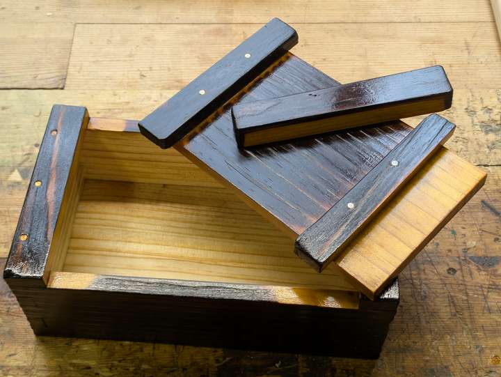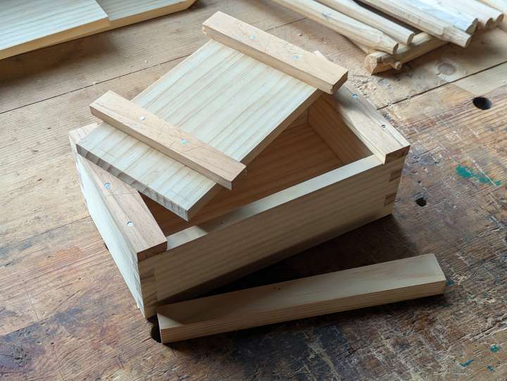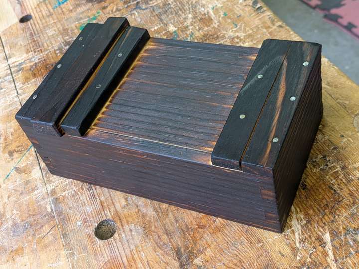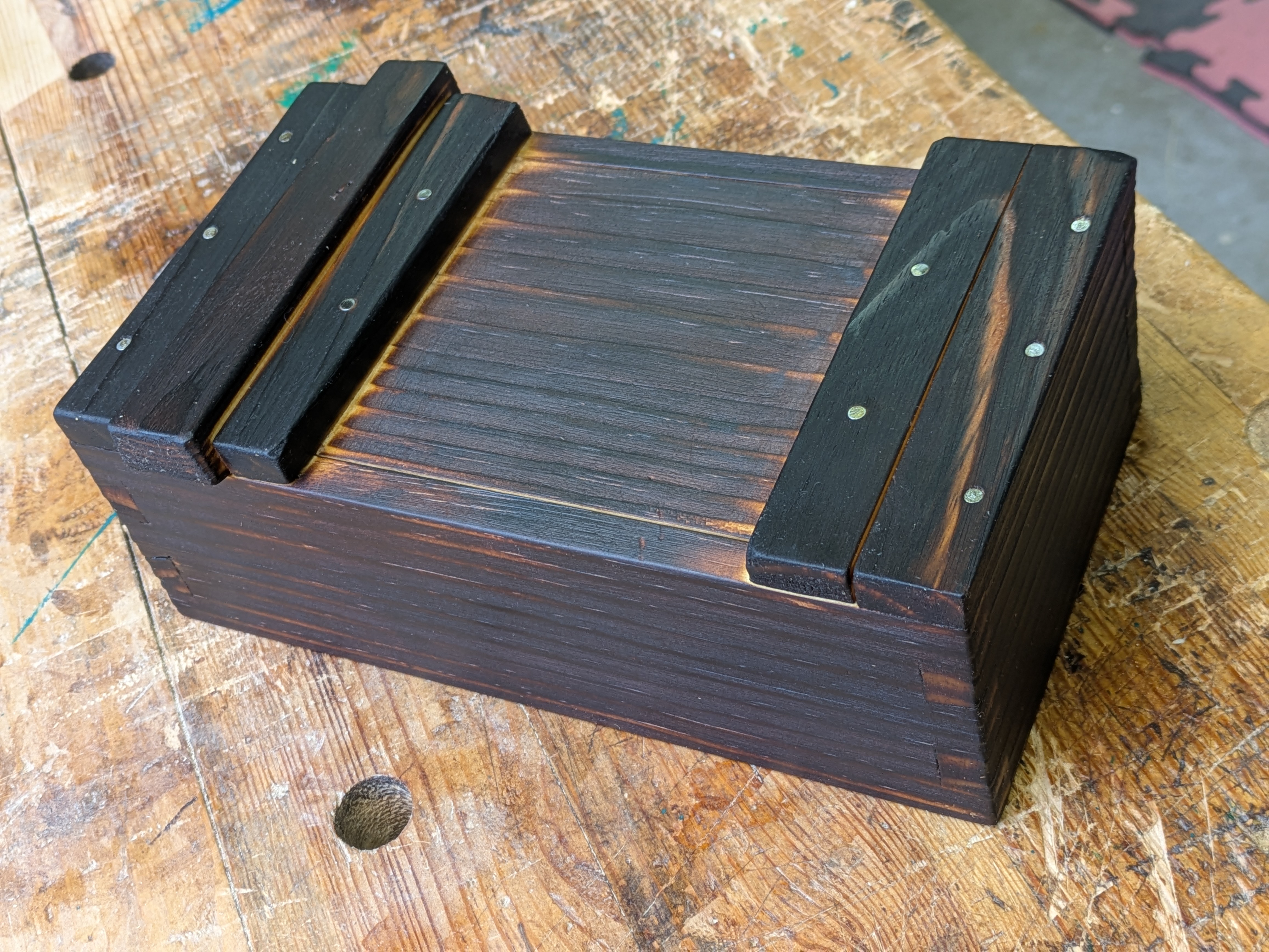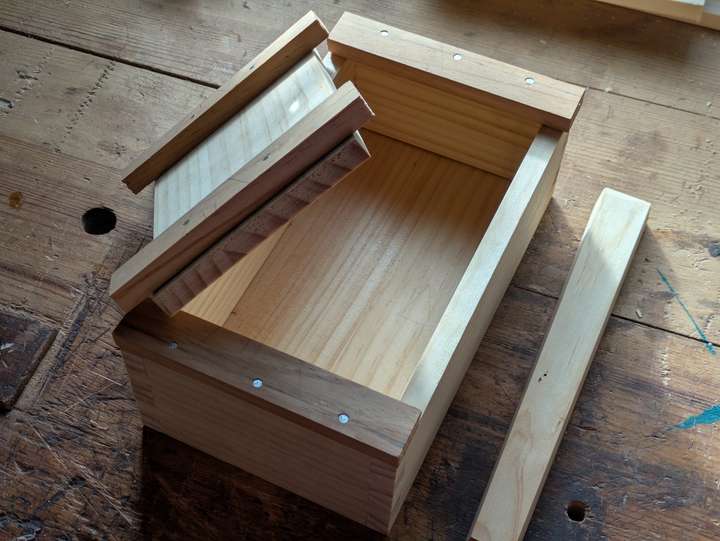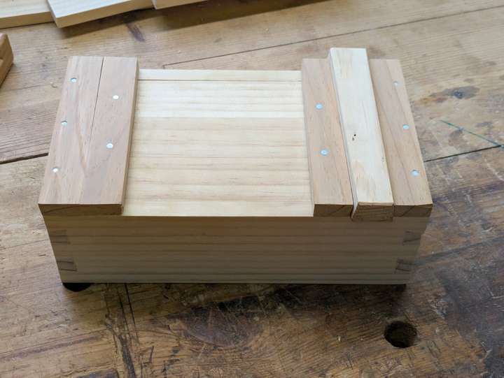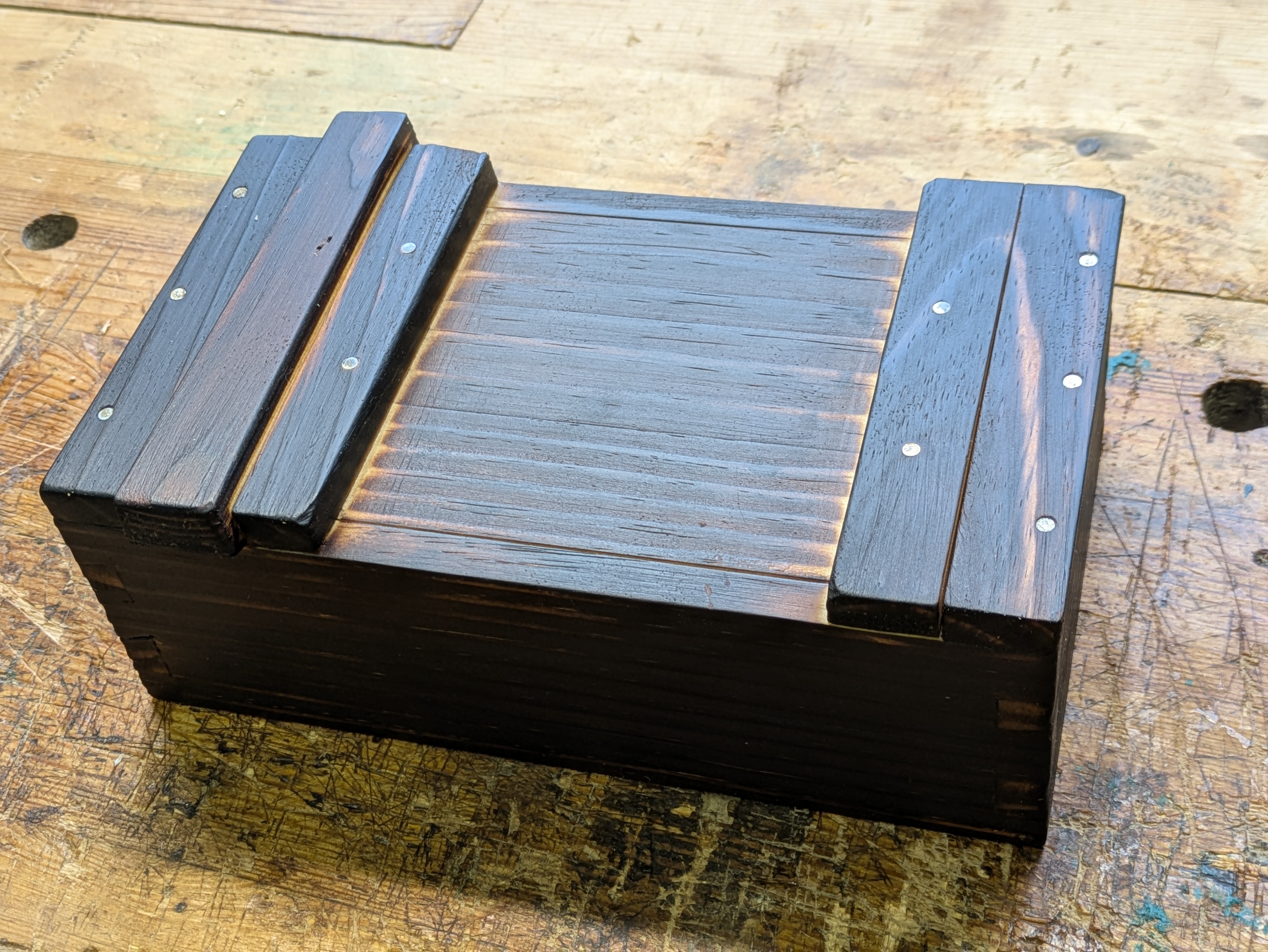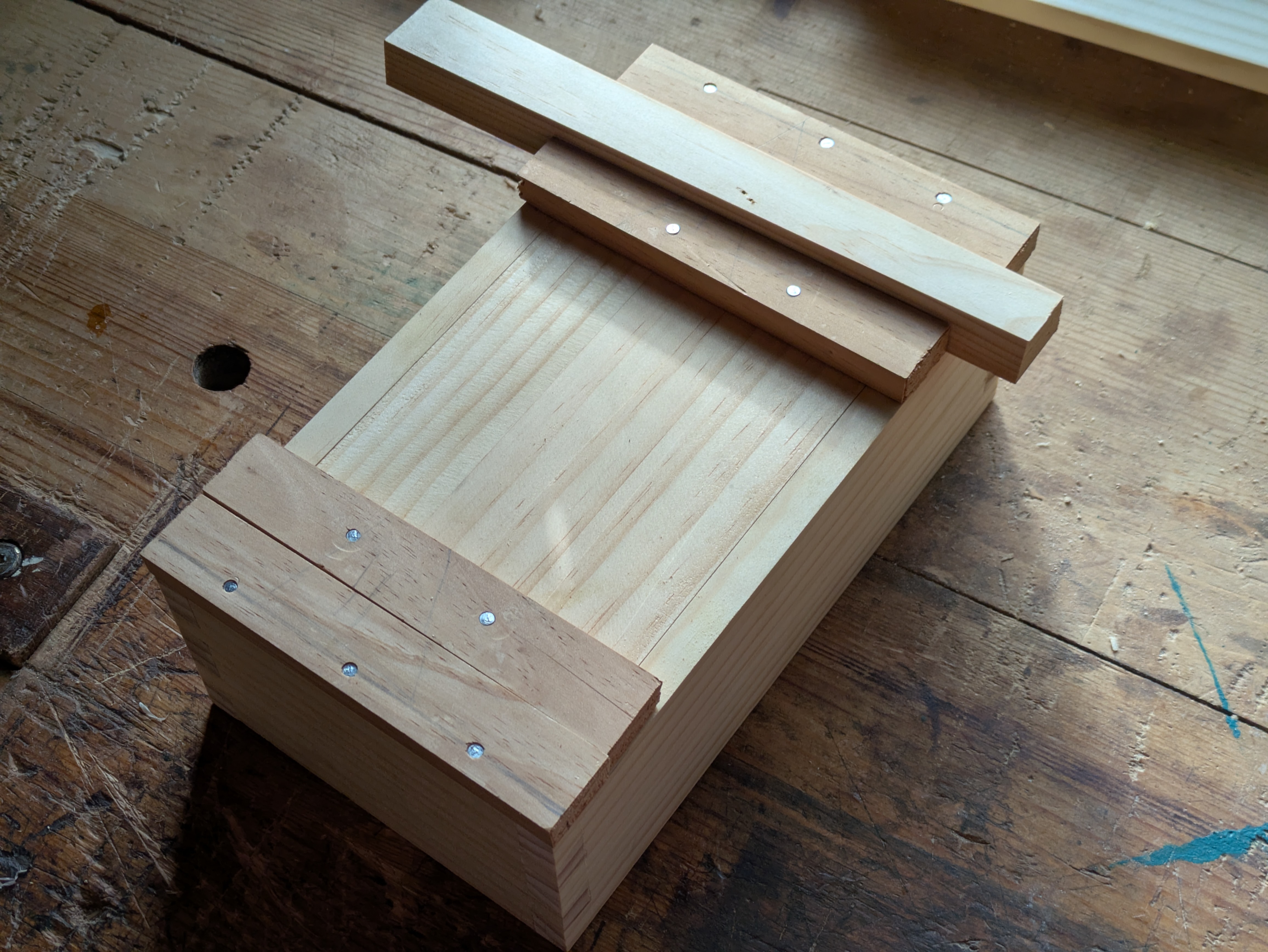 A simple pine box from real junk bedframe wood.