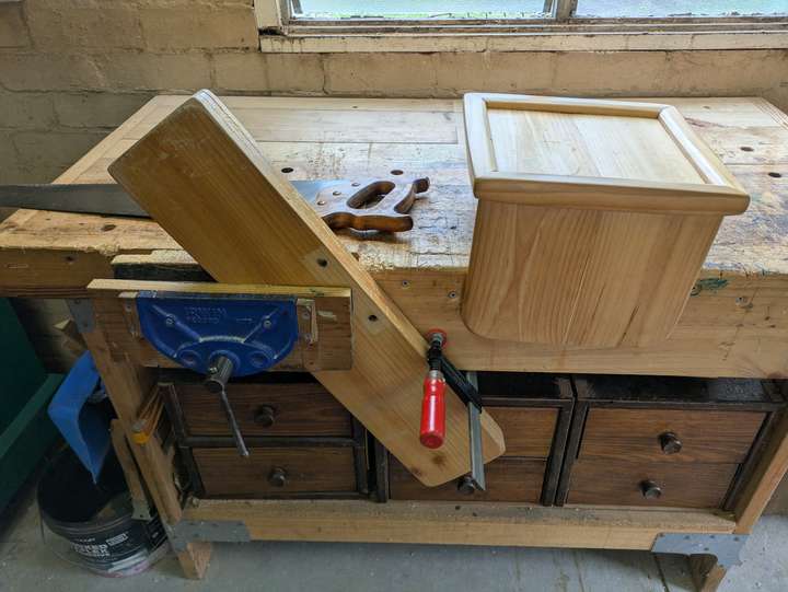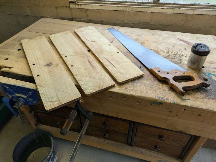 And as it happened, I still had a piece of the same bed-frame I made the first one out of. Not quite as nice a piece, but quite a coincidence.
